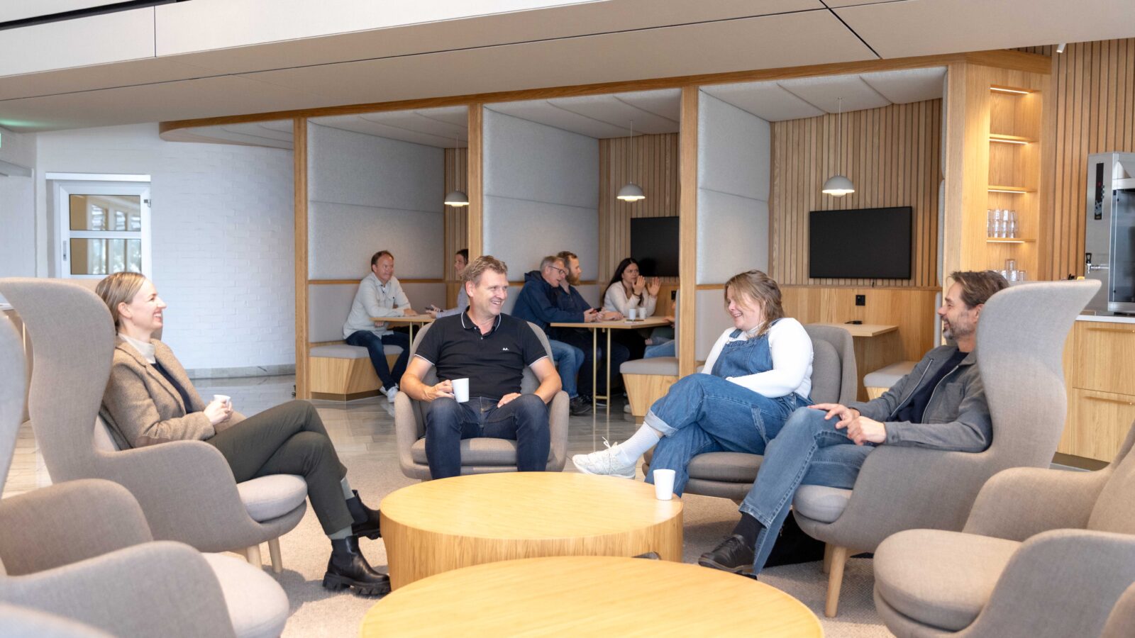 Sonja Myklebust og Annetin Hurum har utarbeidet farge- og materialkonsept samt møbleringsplan for Vinterhagen hos Gard i Arendal. Den nye sosiale sonen har blitt et samlingspunkt hos Gard for uformell kaffepause, små og større møter. Det har blitt en storstue som brukes hele dagen.