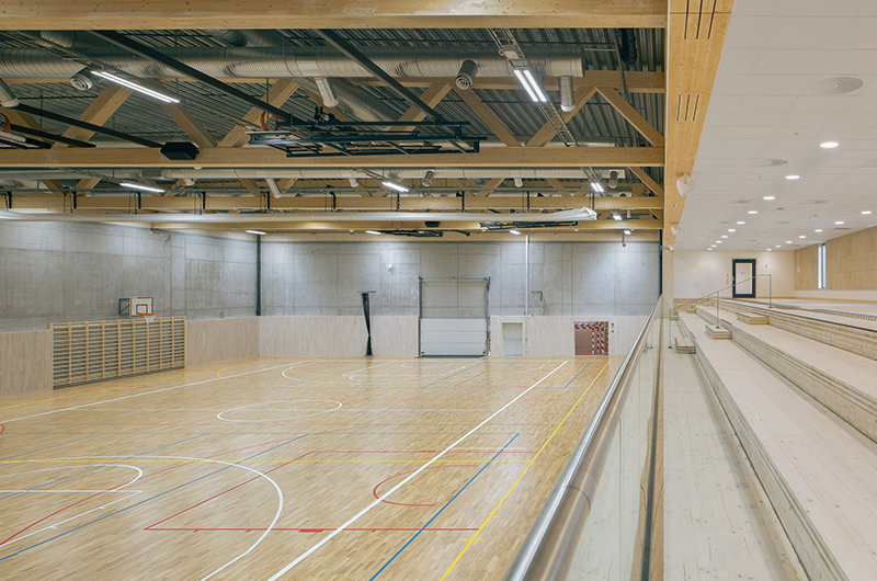 Selve hallarealene er plassert på naturlig hylle i terrenget i andre etasjenivå for optimal massebalanse. Prosjektet nneholder flerbrukshall og egen hall for bordtennis i tillegg til fotballgarderober og styrketreningsrom i sokkeletasje. Prosjektet har meget høye miljøambisjoner. Det er lokal massebalanse, passivhus og massivtre.