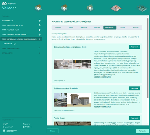 I forskningsprosjektet GjenOm er det utarbeidet en veileder som skal forenkle ombruk av bærende konstruksjoner i betong. Veilederen er digital og utviklet av Loopfront. Denne veilederen er laget for bygningseiere som eier bygningsmasse som ikke lenger dekker deres behov. Hensikten er å unngå unødvendig ressursbruk og store inngrep i eksisterende bygninger, som for eksempel å rive til fordel for nybygg.